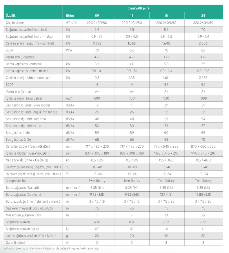 climaVAIR pure Inverter Mono Split Klimalar