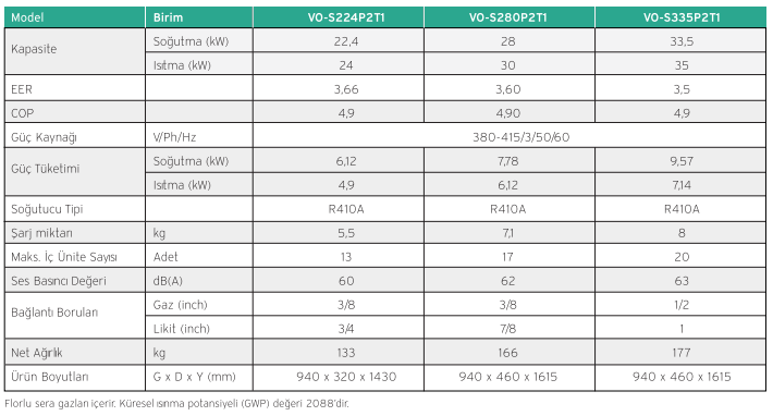 8 HP: 22.4 kW Soğutma / 24.0 kW Isıtma